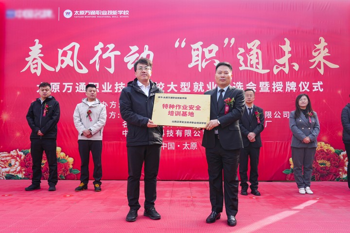 然后,山西正泽安全技术职业培训学校校长邢登峰与王校进行授牌,授予万通学校“特种作业安全培训基地”,校校合作,共筑人才培养新高地。