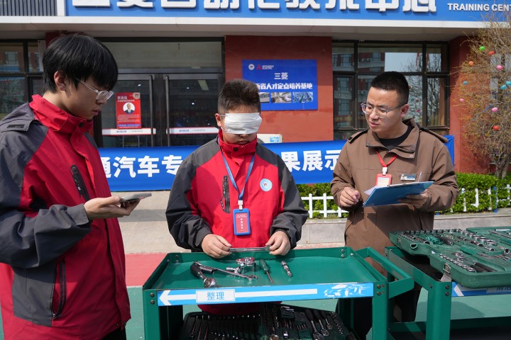 3月27日,太原万通职业技能学校新能源汽车专业教学成果展在校操场火热开展。本次活动通过设置“蒙眼识工具”技能挑战环节,全面检验学生对专业工具的熟悉程度,集中展示扎实的实操基本功,进一步激发学子精益求精的工匠精神。